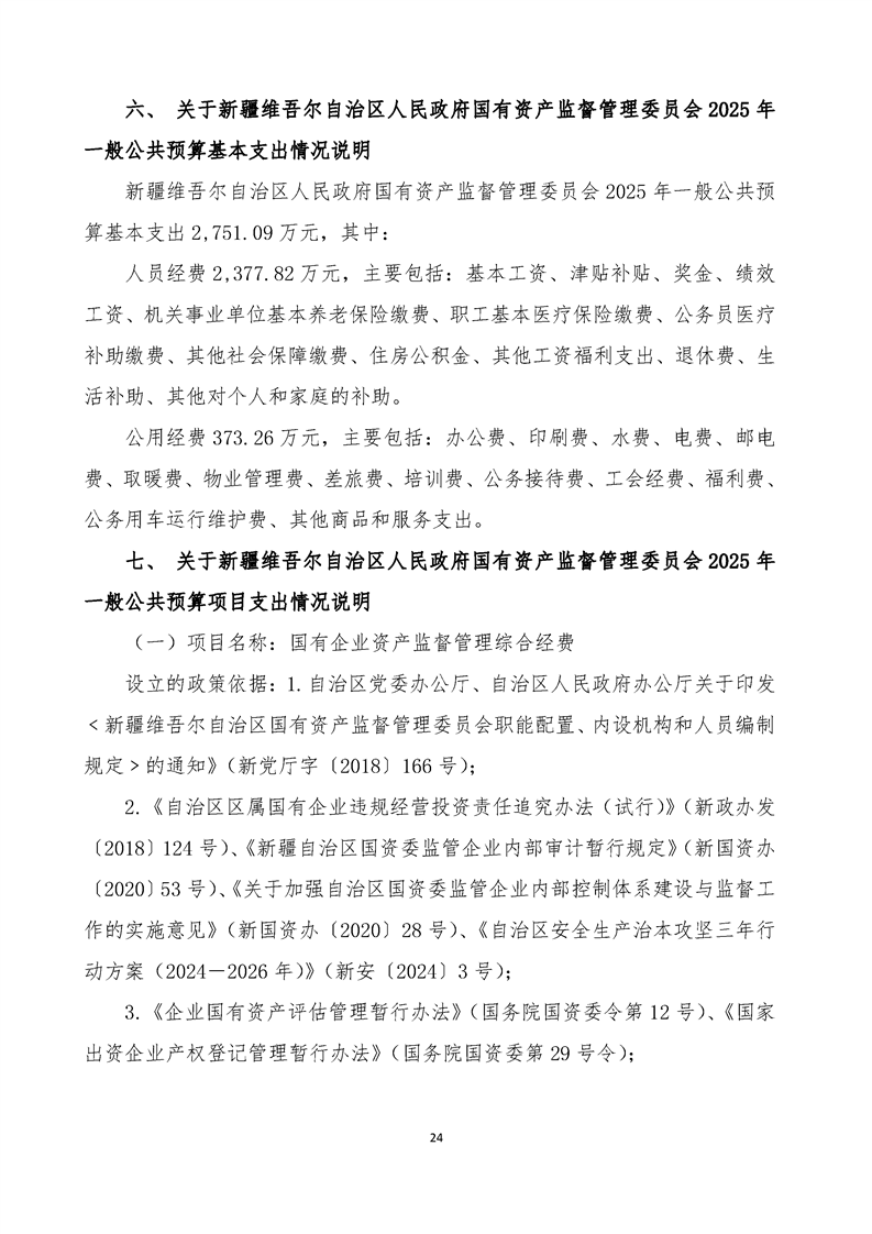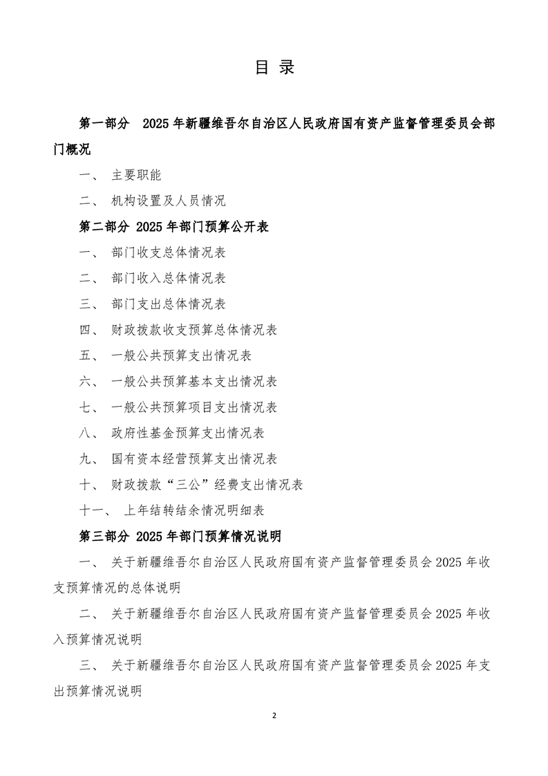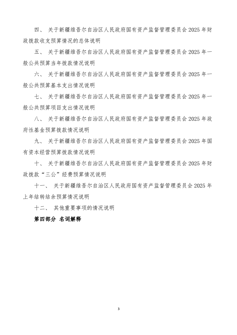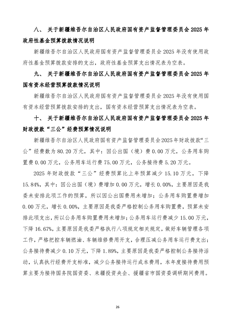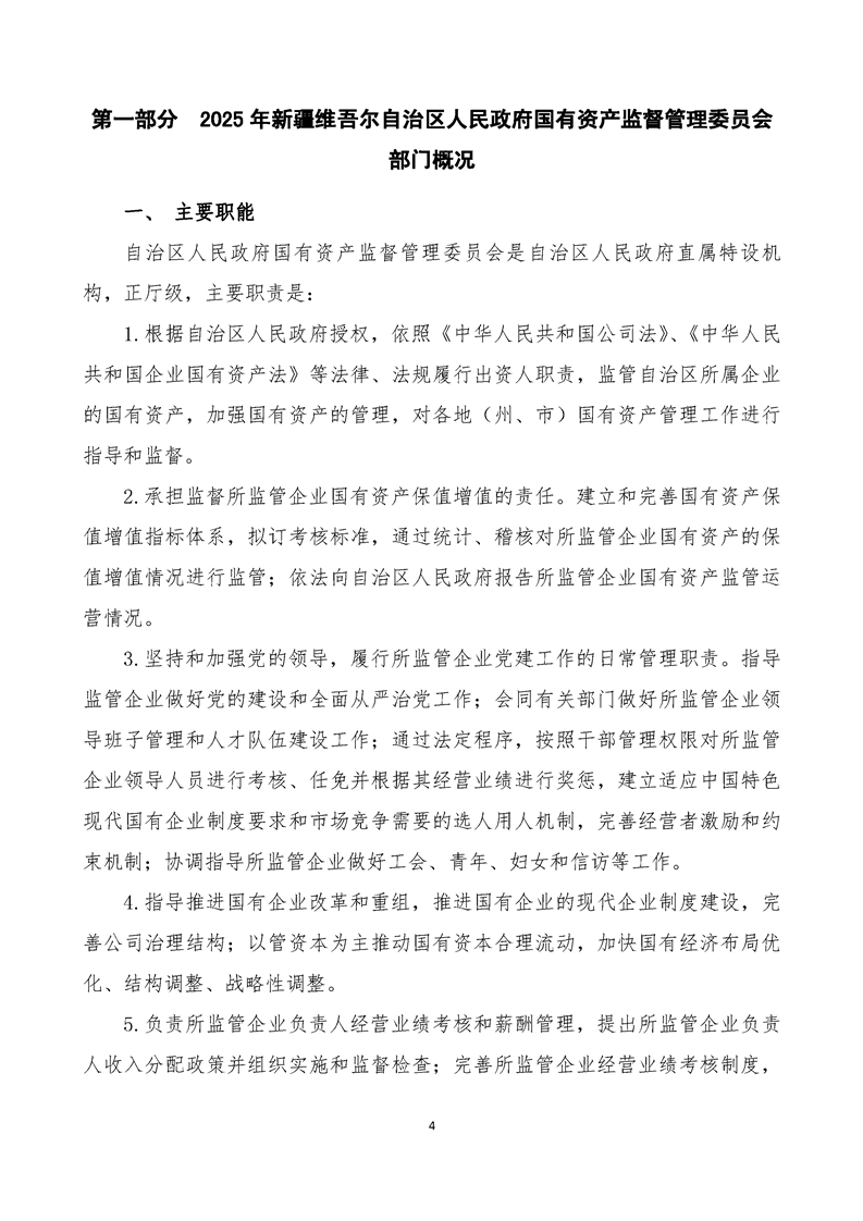 新疆维吾尔自治区人民政府国有资产监督管理委员会2025年部门预算公开报告