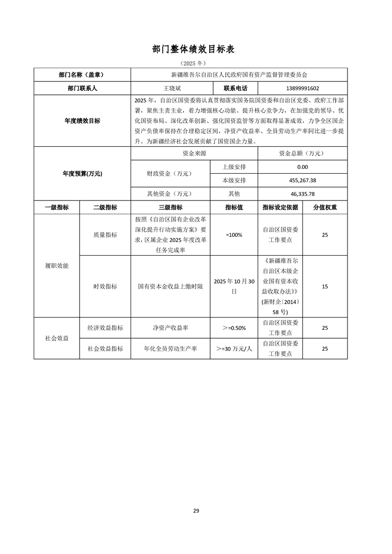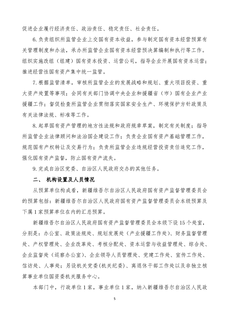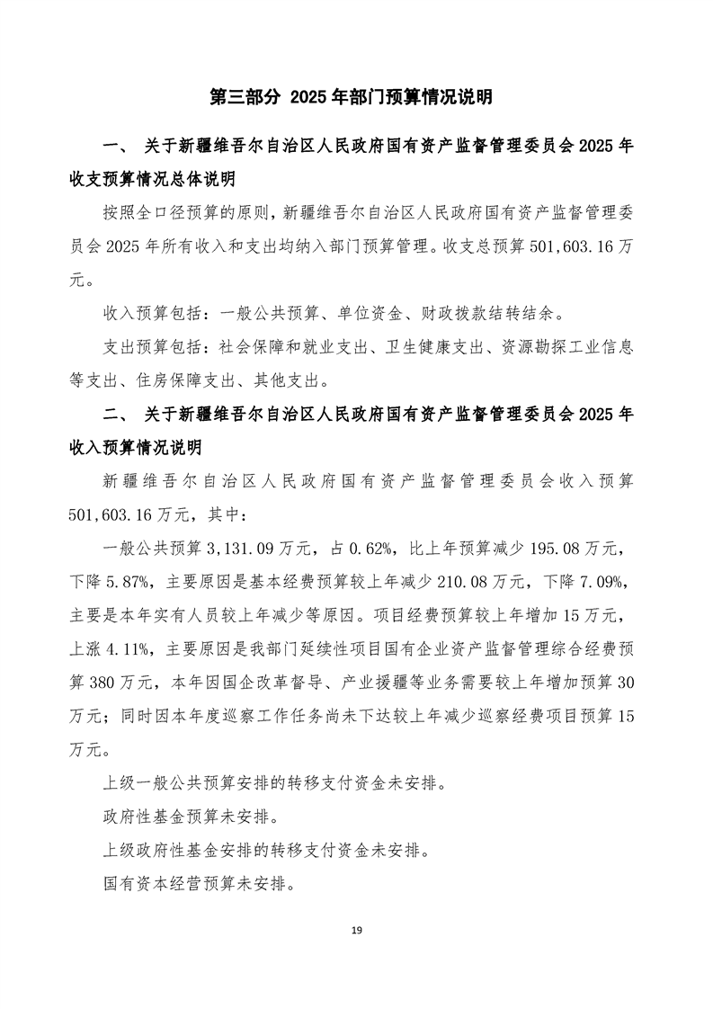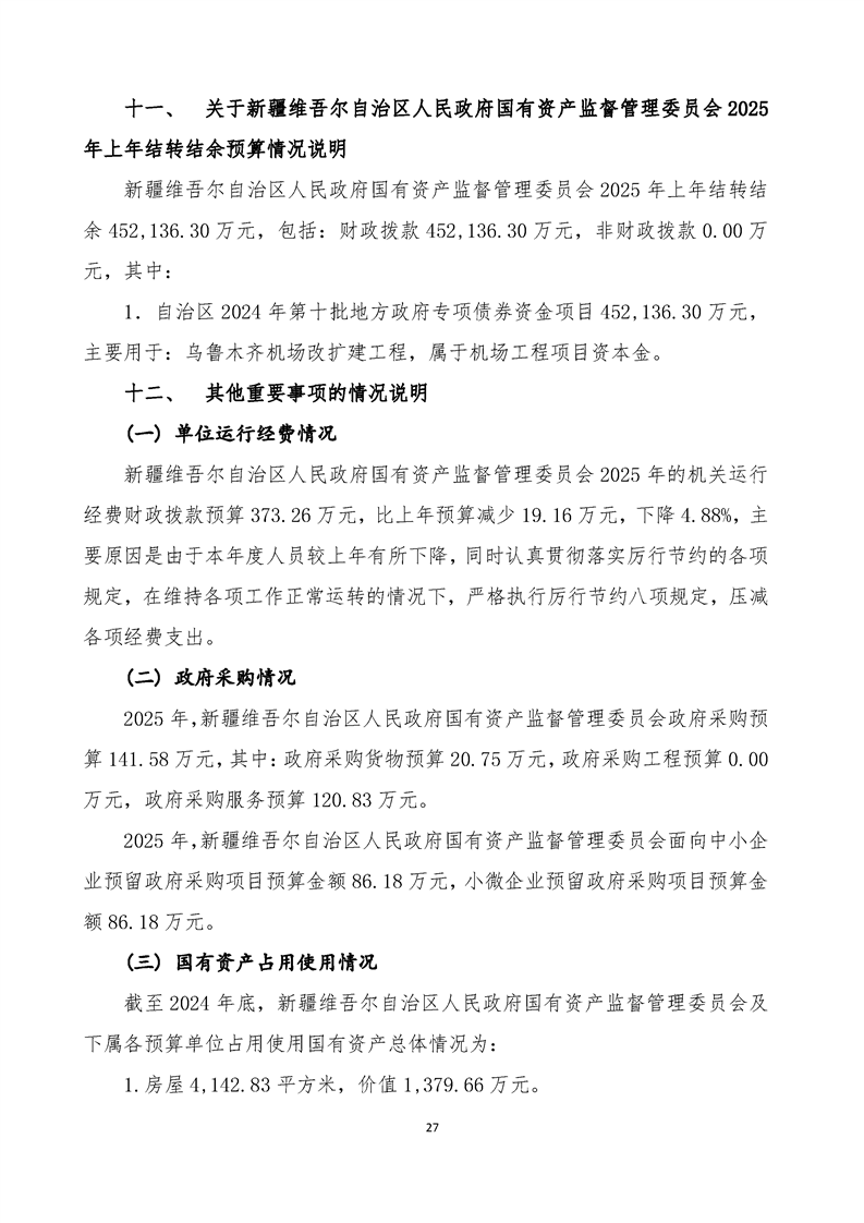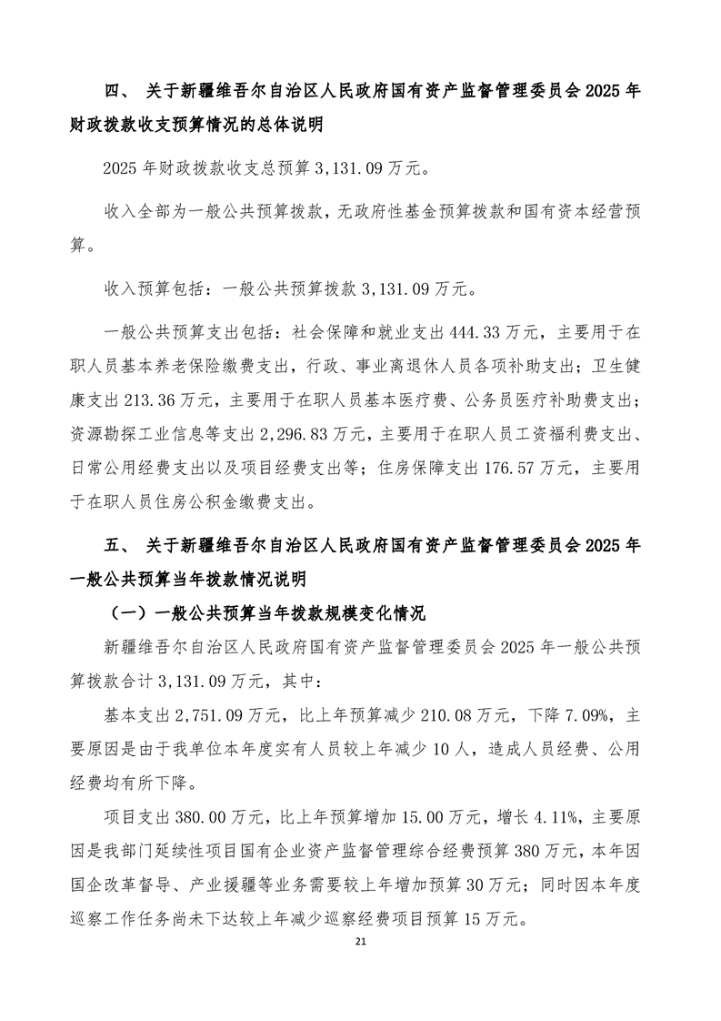 新疆维吾尔自治区人民政府国有资产监督管理委员会2025年部门预算公开报告