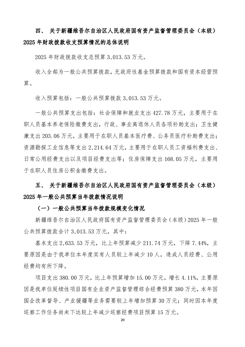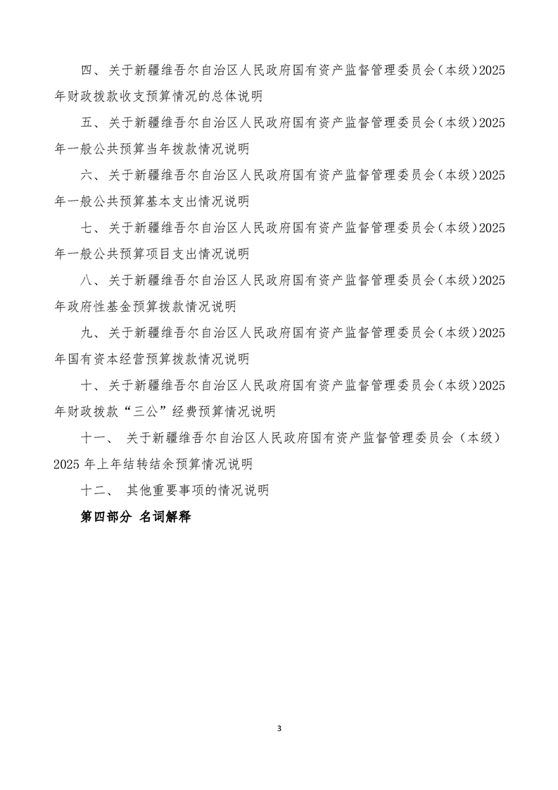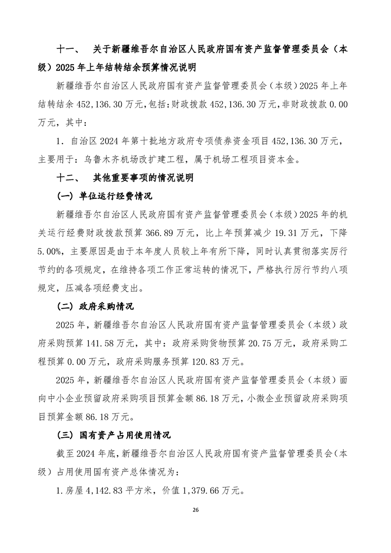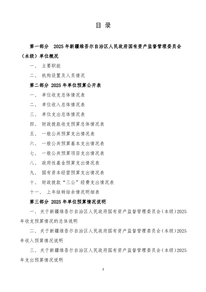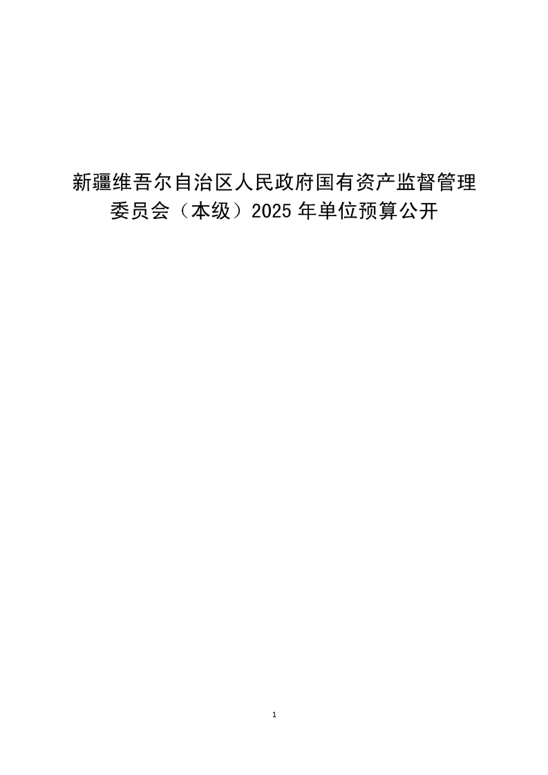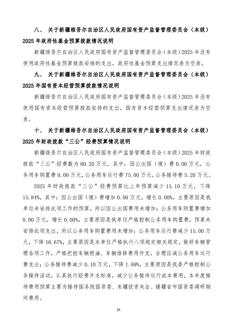 新疆维吾尔自治区人民政府国有资产监督管理委员会(本级)2025年预算公开报告