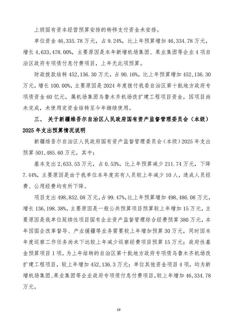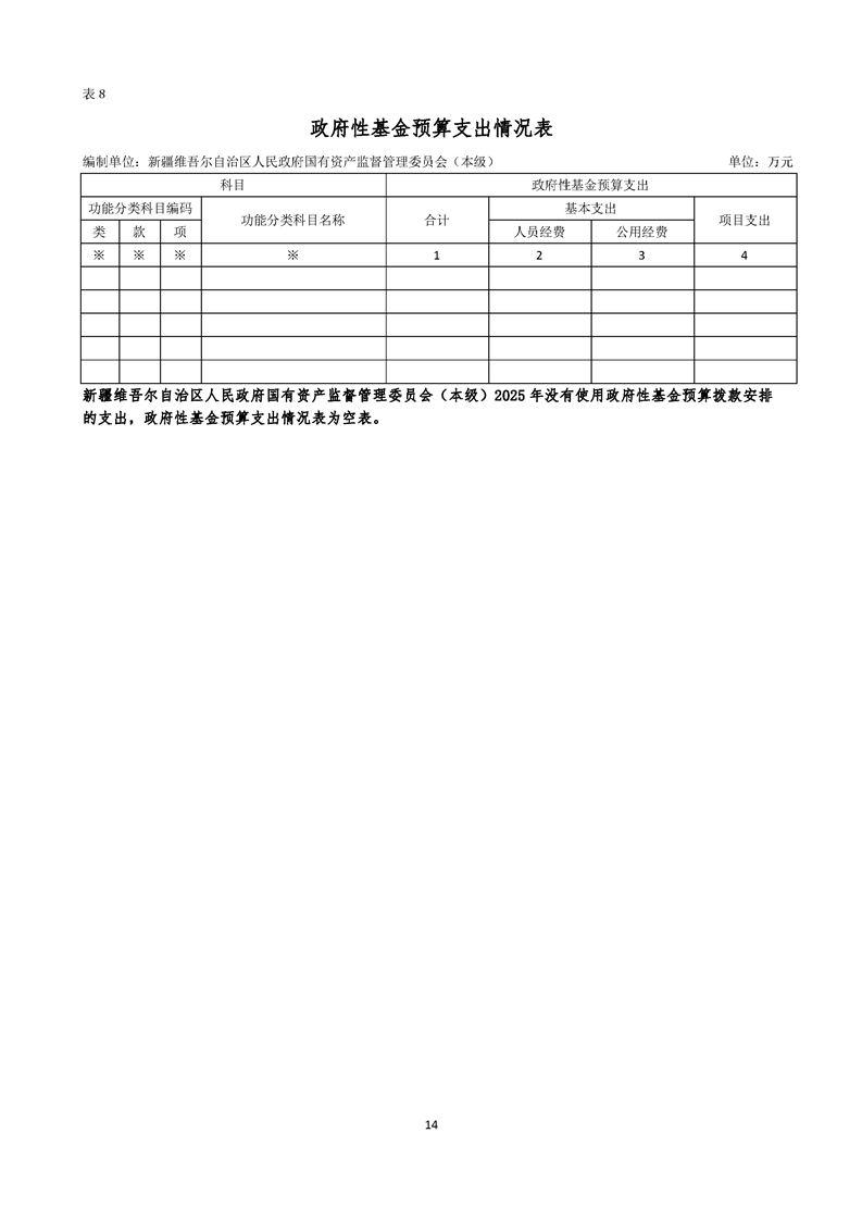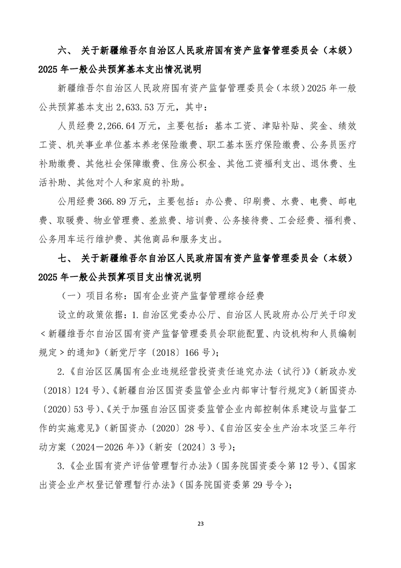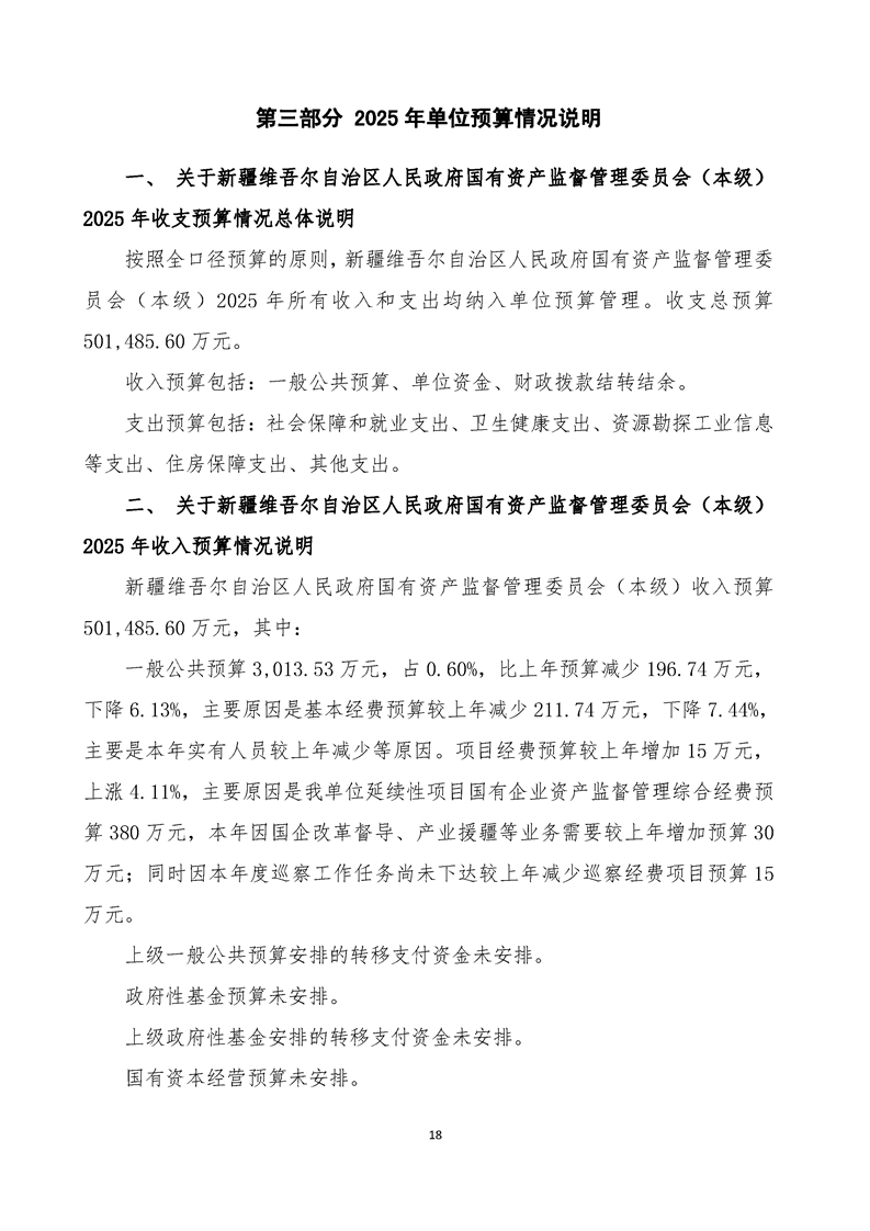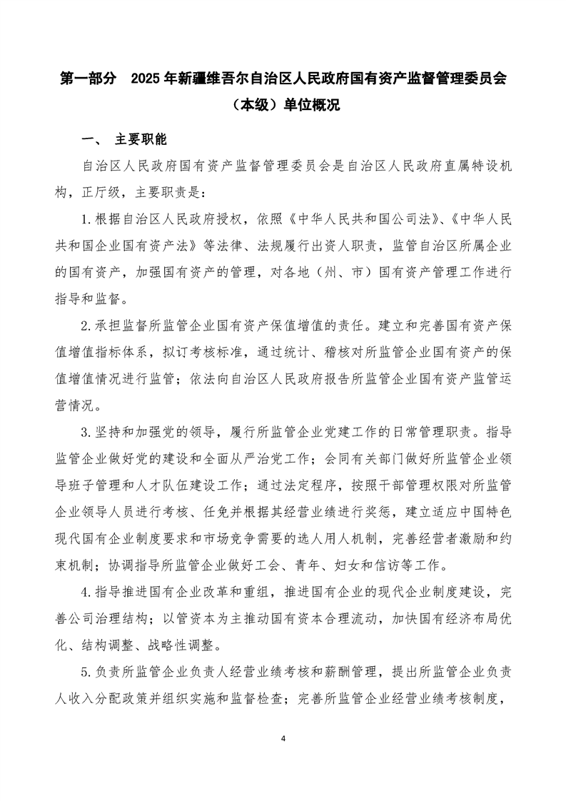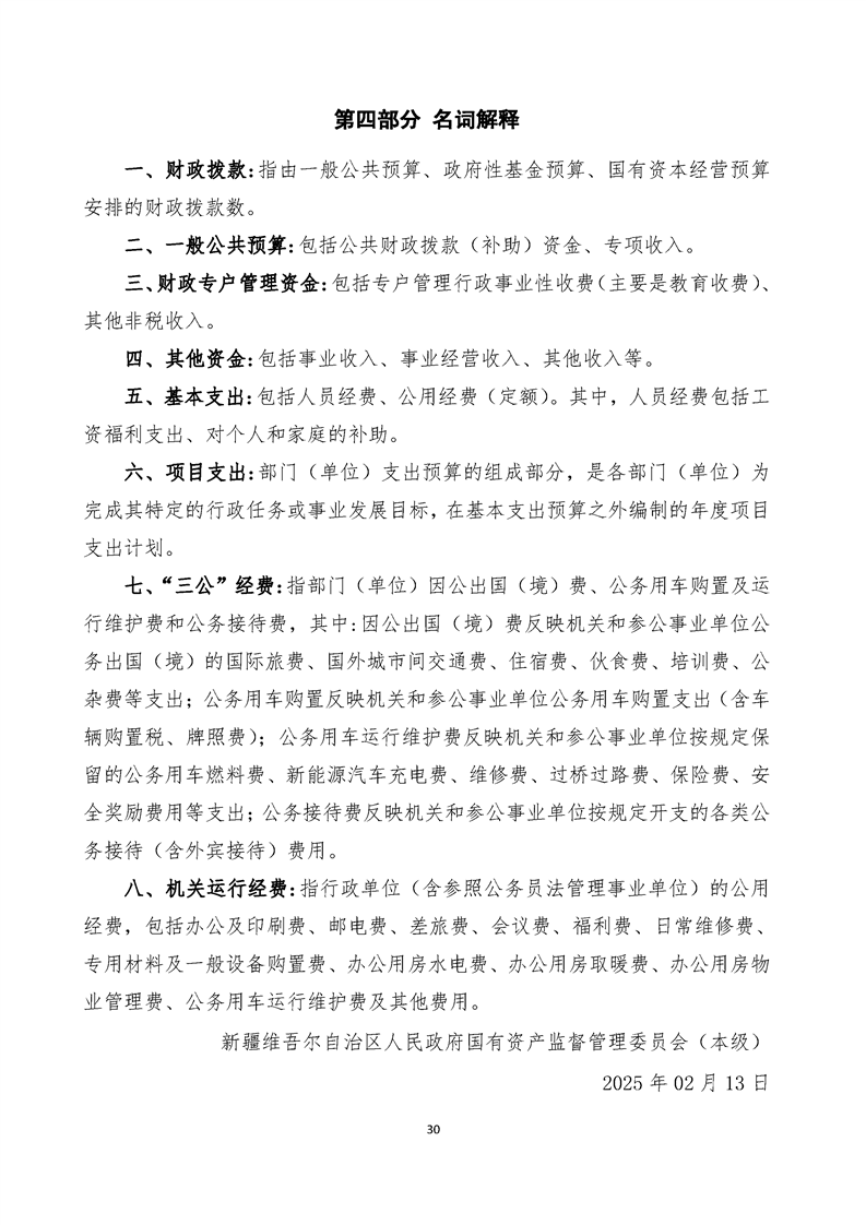 新疆维吾尔自治区人民政府国有资产监督管理委员会(本级)2025年预算公开报告
