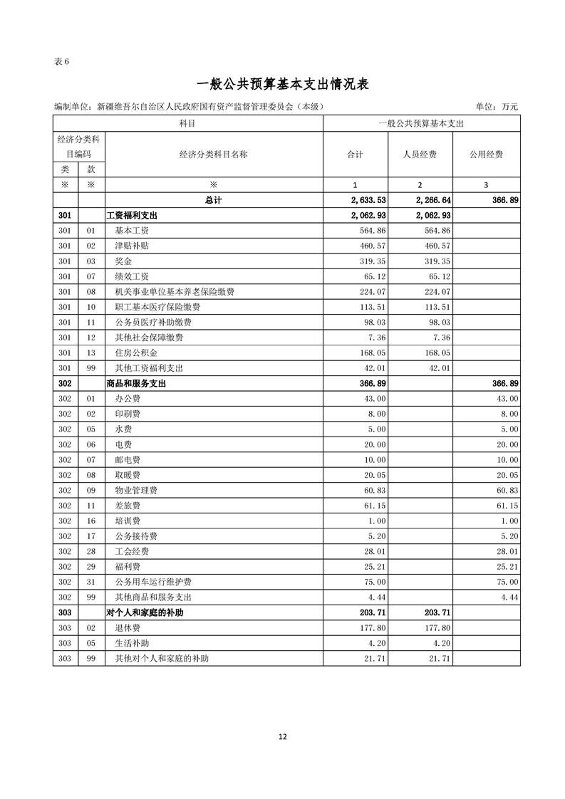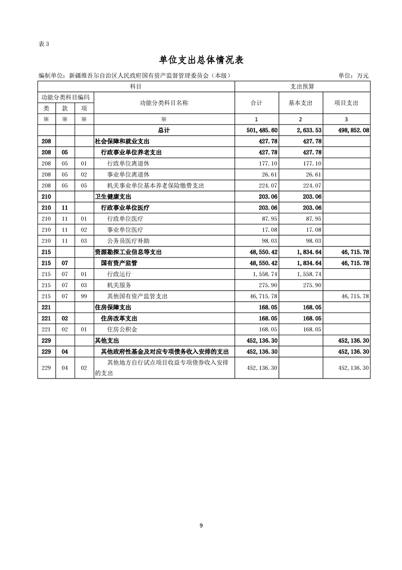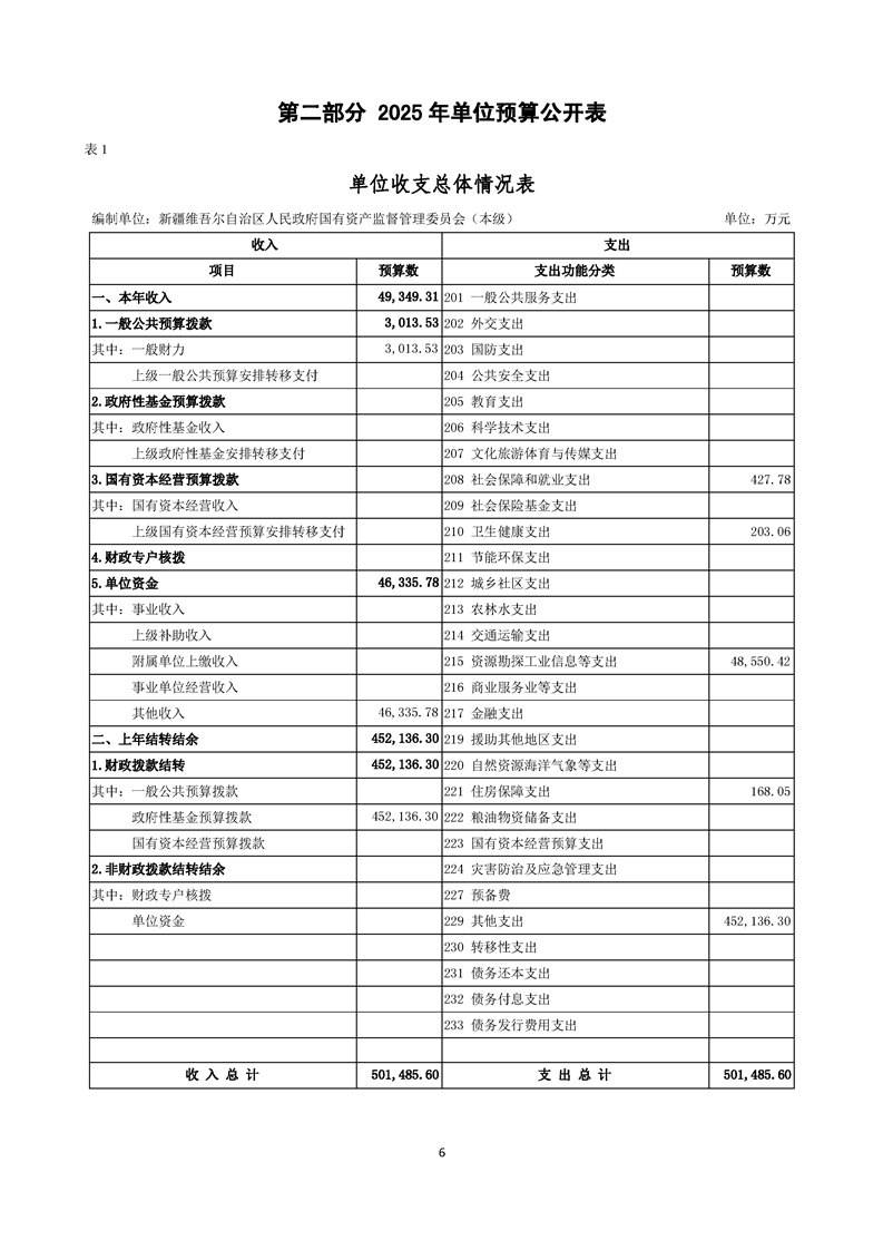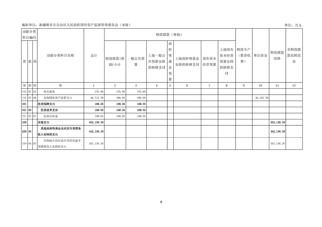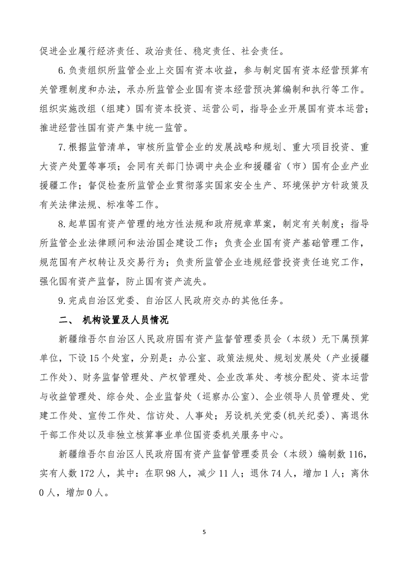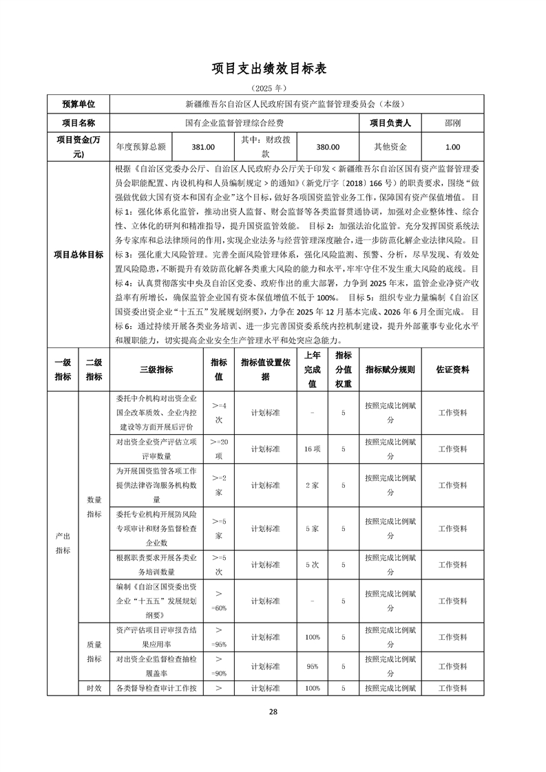新疆维吾尔自治区人民政府国有资产监督管理委员会(本级)2025年预算公开报告