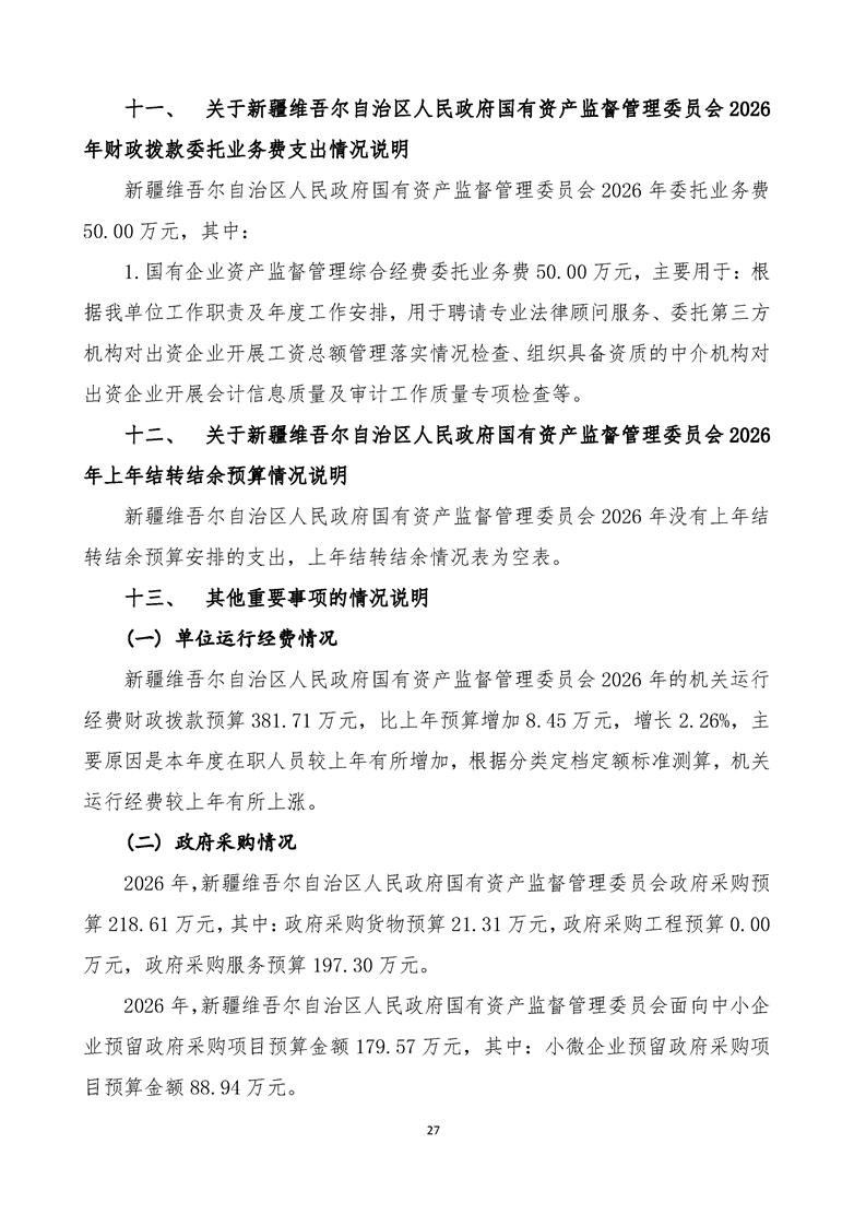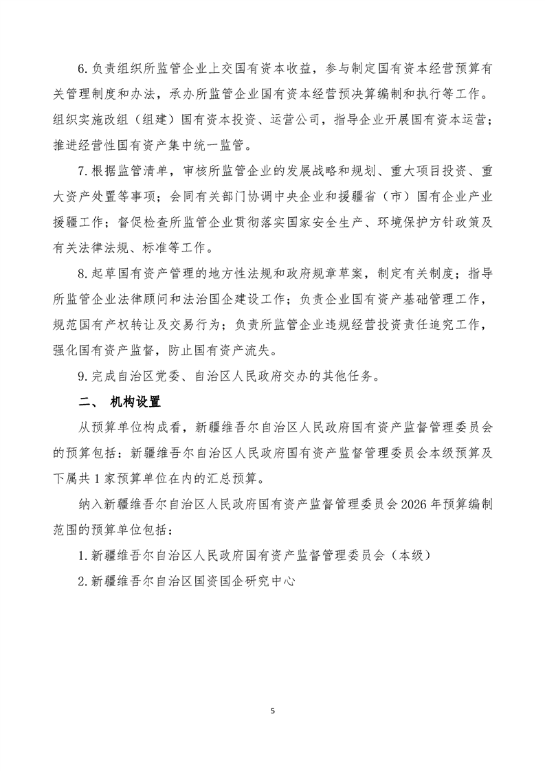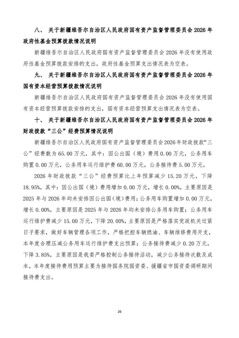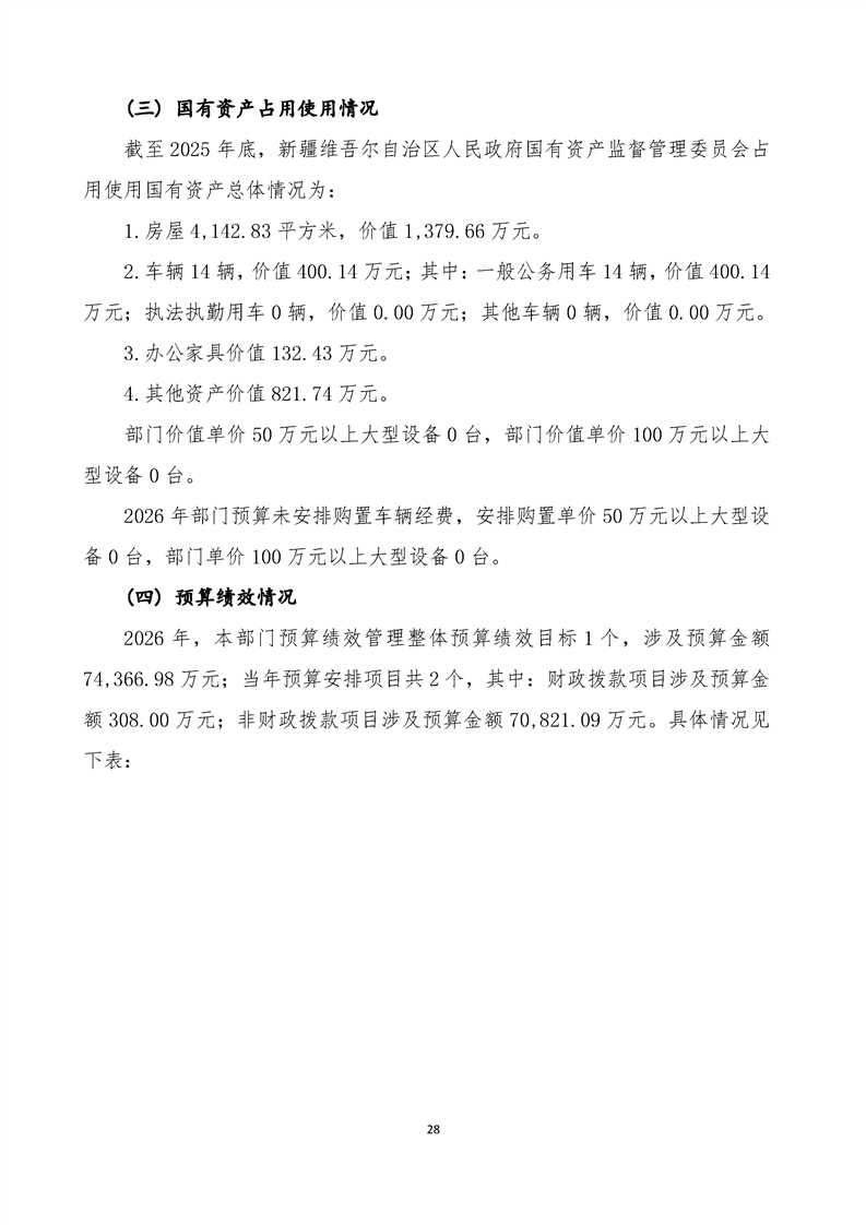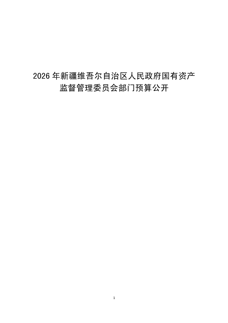 新疆维吾尔自治区人民政府国有资产监督管理委员会2026年部门预算公开报告