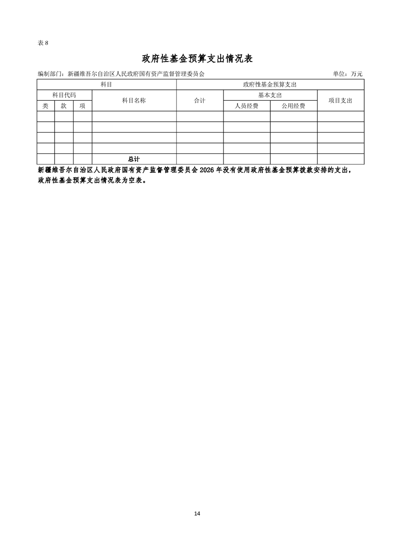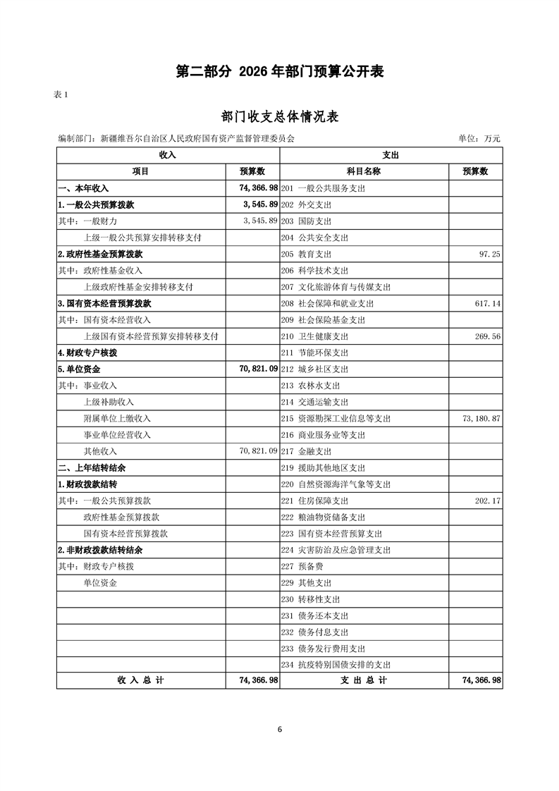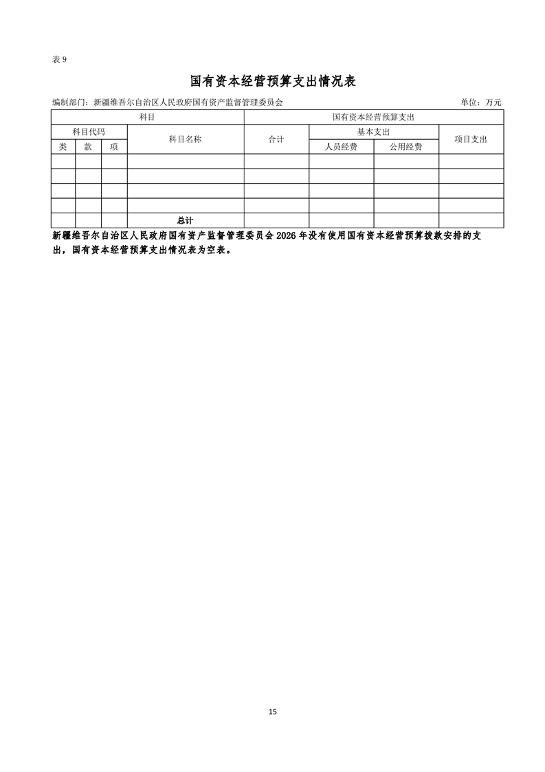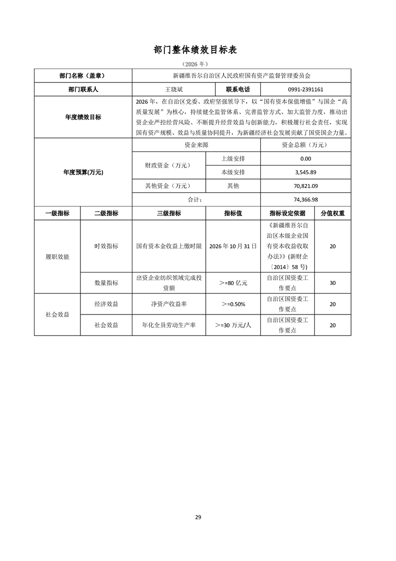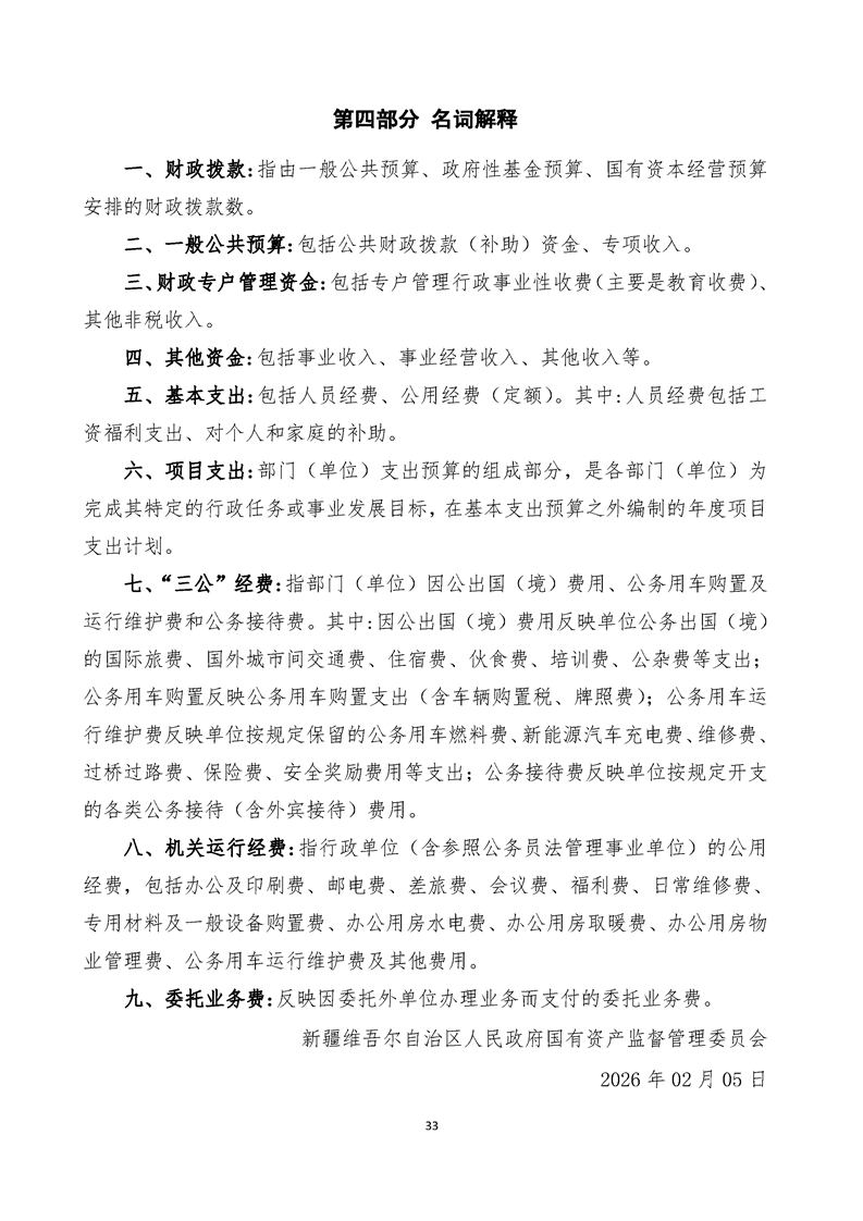 新疆维吾尔自治区人民政府国有资产监督管理委员会2026年部门预算公开报告