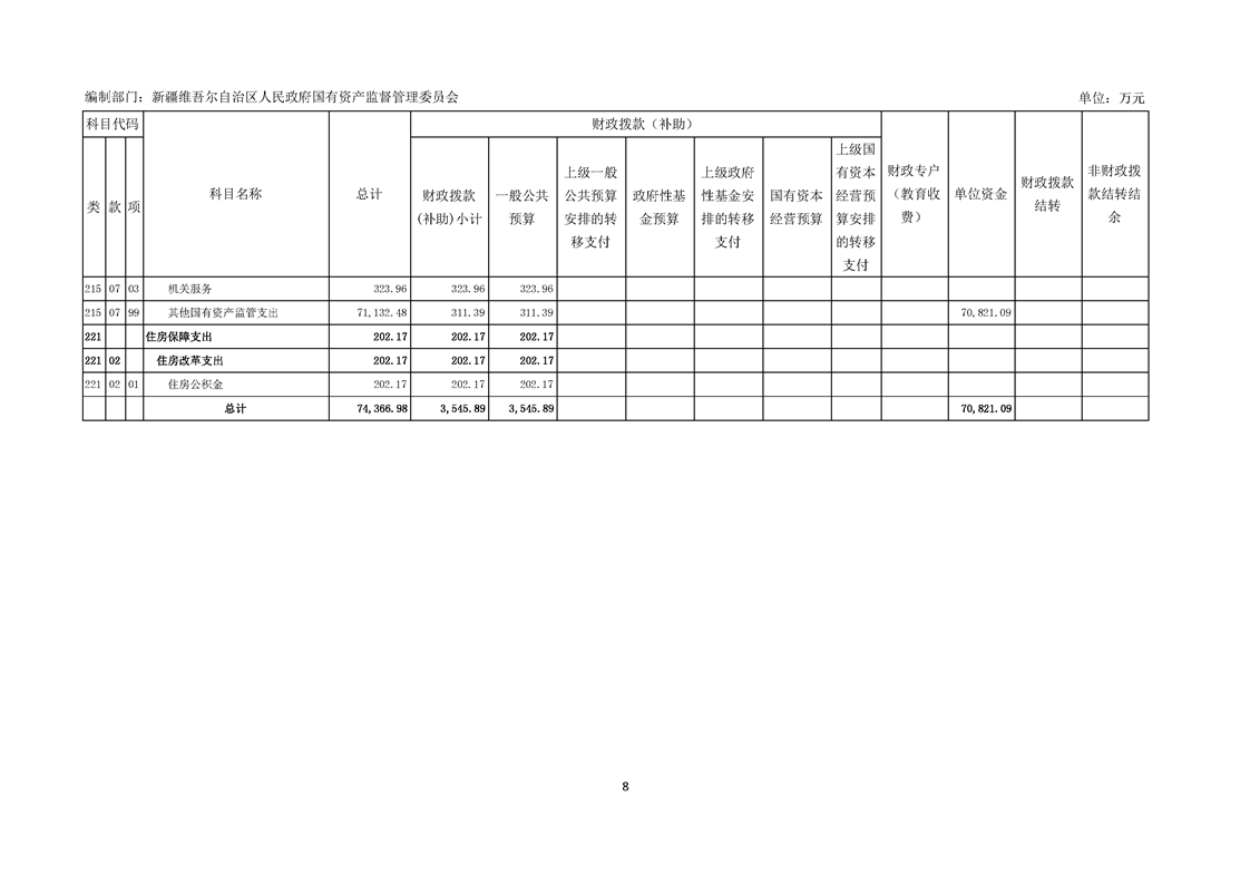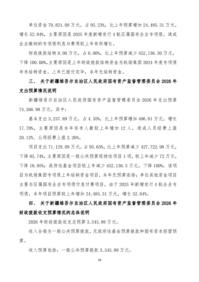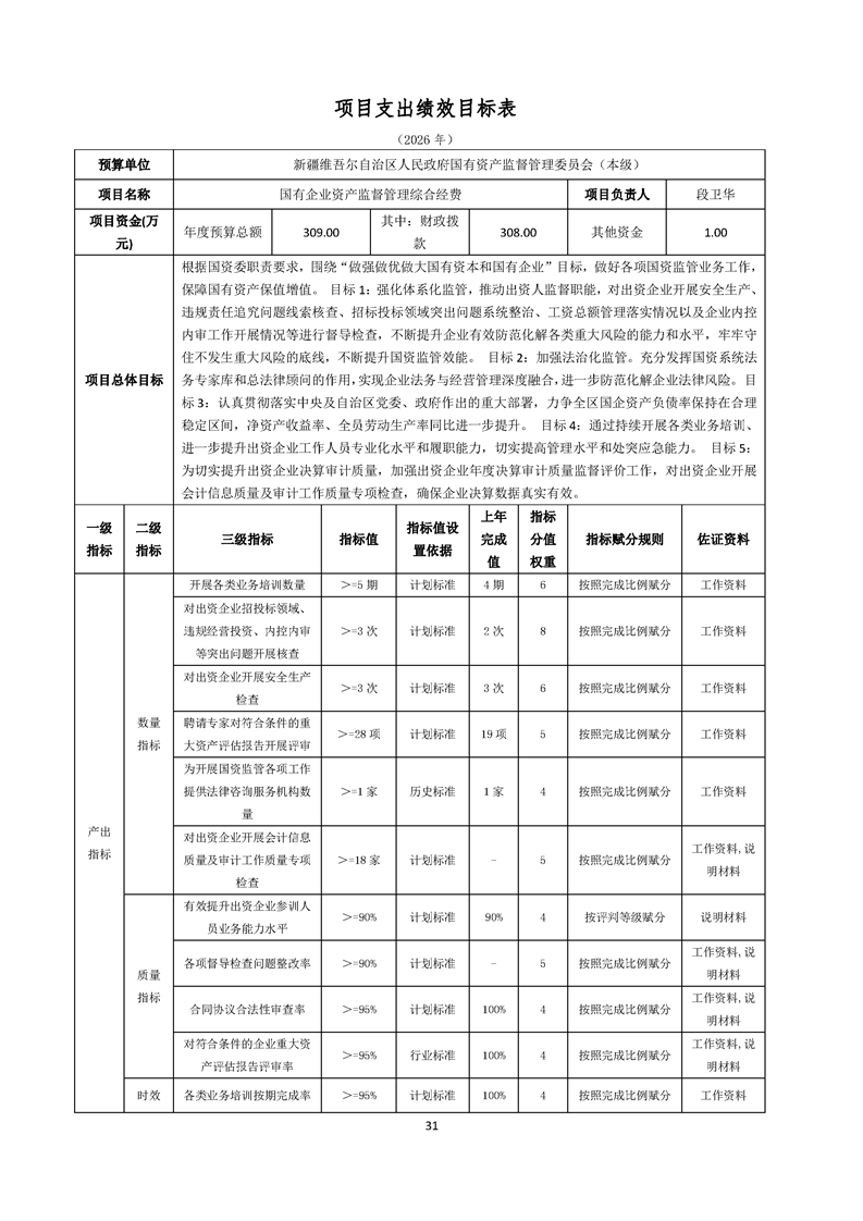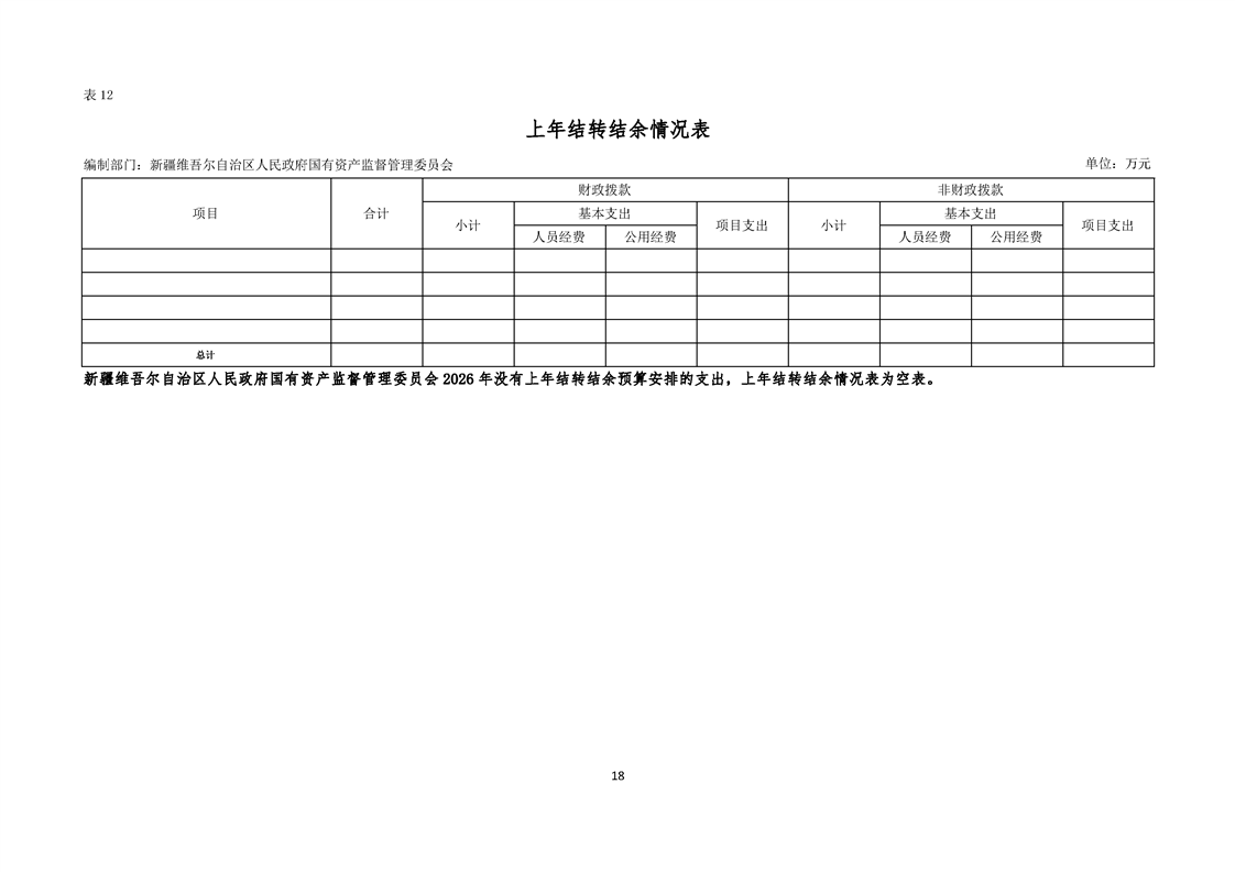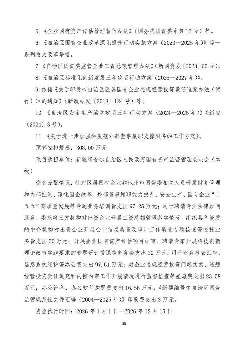 新疆维吾尔自治区人民政府国有资产监督管理委员会2026年部门预算公开报告