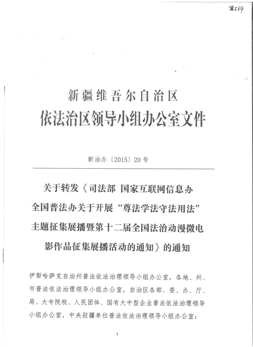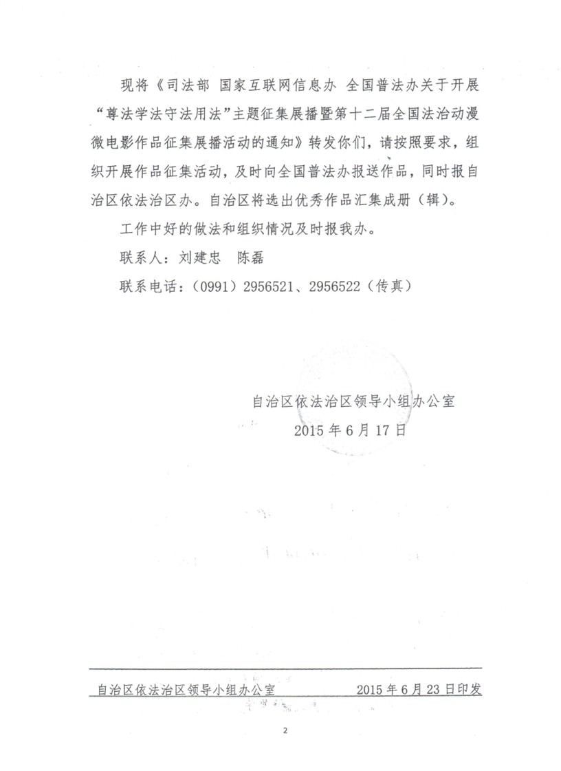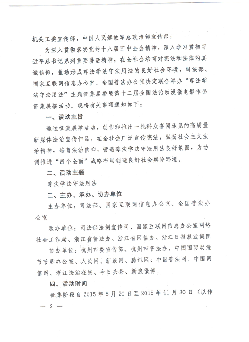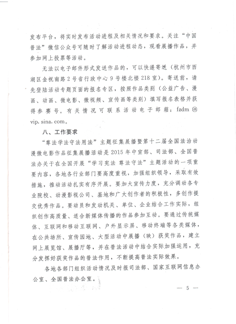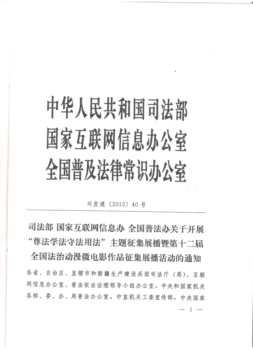 关于转发《司法部 国家互联网信息办 全国普法办关于开展“尊法学法守法用法”主题征集展播暨十二届全国法制动漫微电影作品征集展播活动的通知》的通知 ...