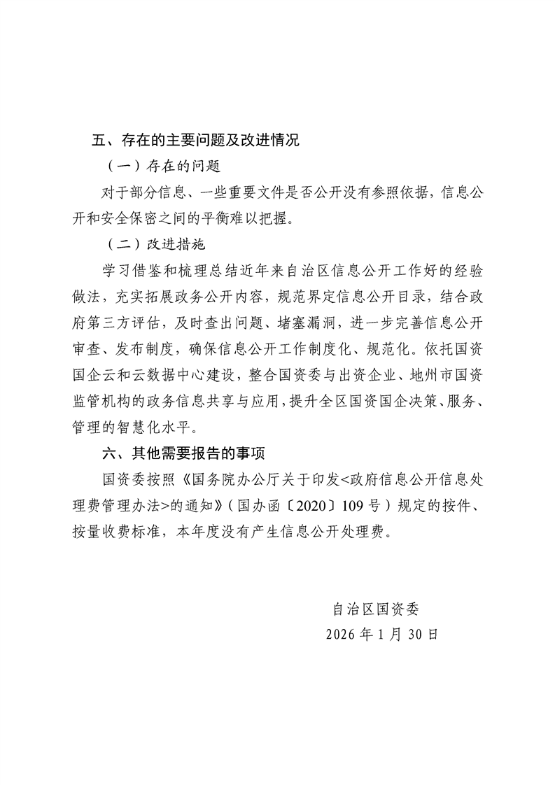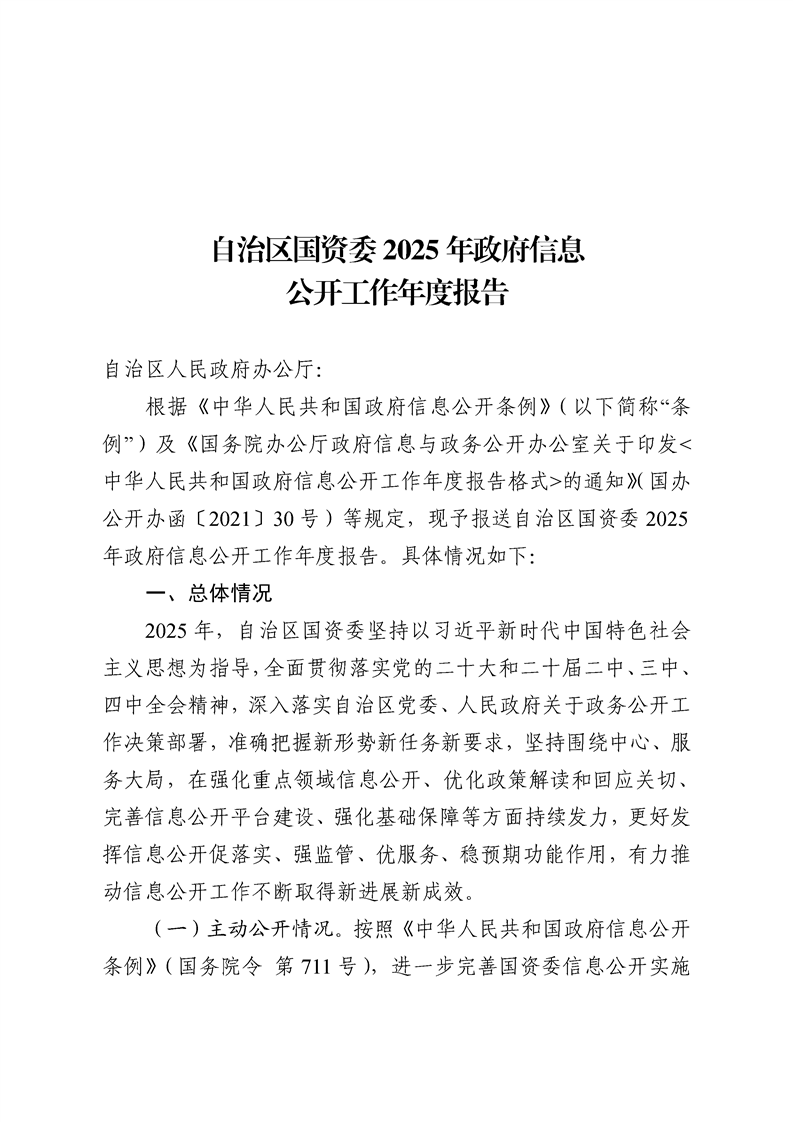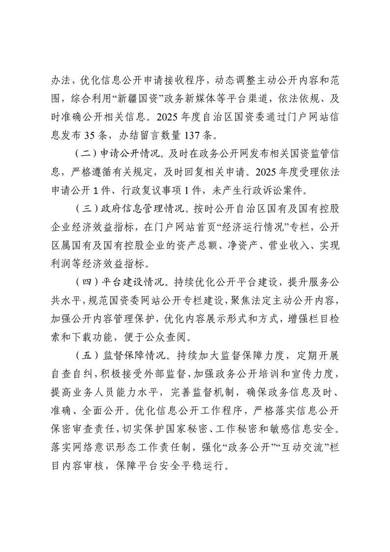 新疆维吾尔自治区人民政府国有资产监督管理委员会2025年度信息公开工作报告