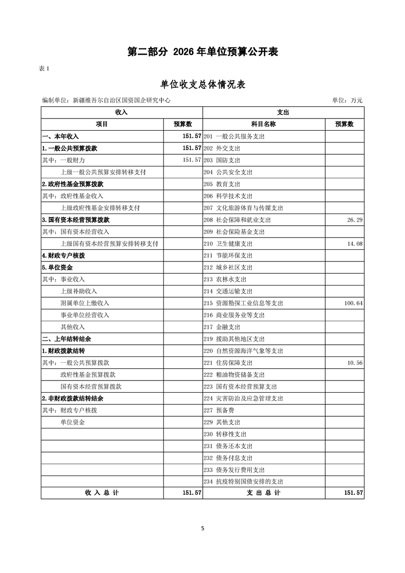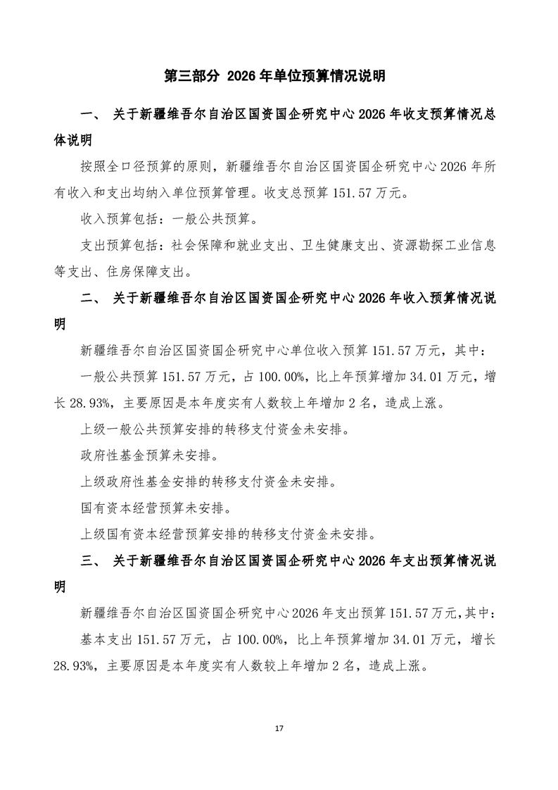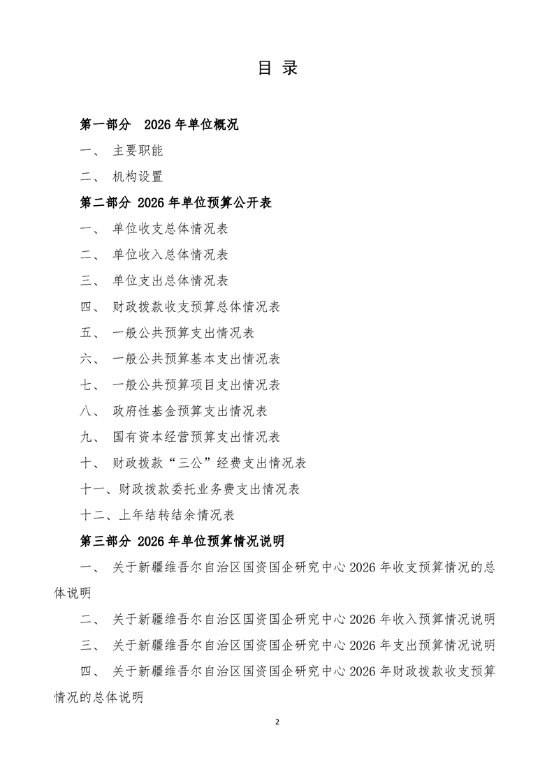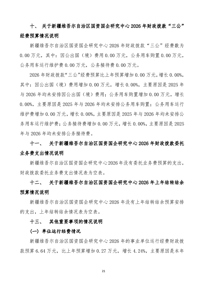 新疆维吾尔自治区国资国企研究中心2026年单位预算公开报告