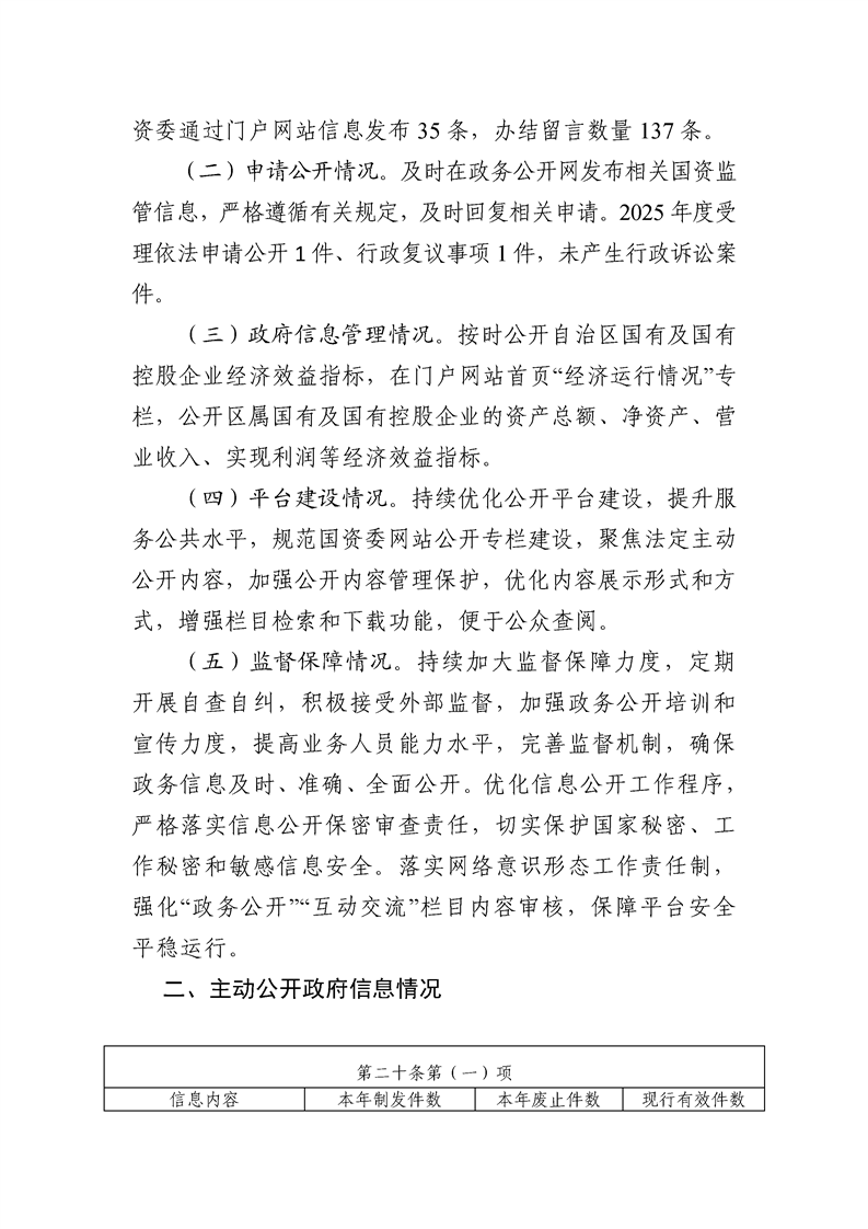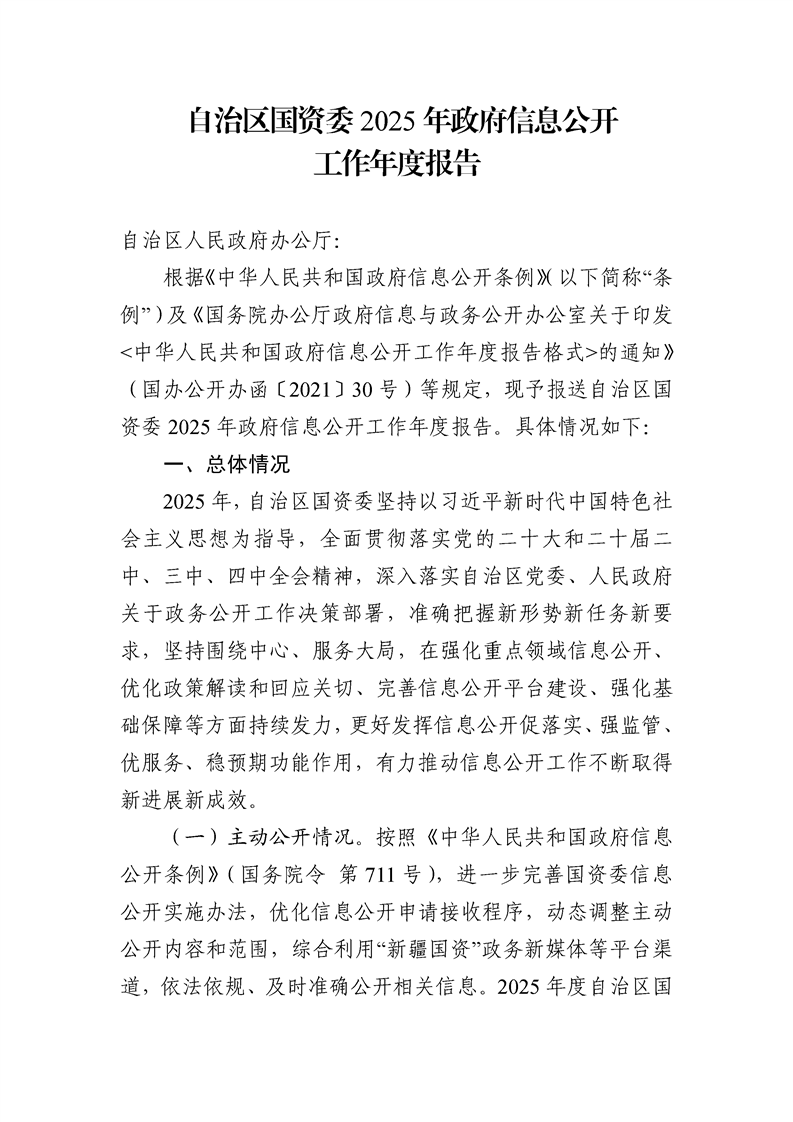 新疆维吾尔自治区人民政府国有资产监督管理委员会2025年度信息公开工作报告